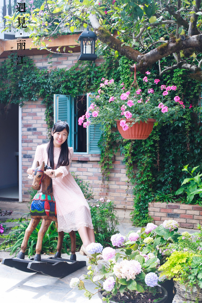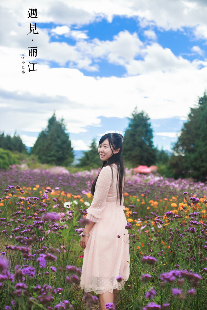紫色配上花园,提升整个浪漫气息,也有别于丽江烂大街的民族风连衣裙。