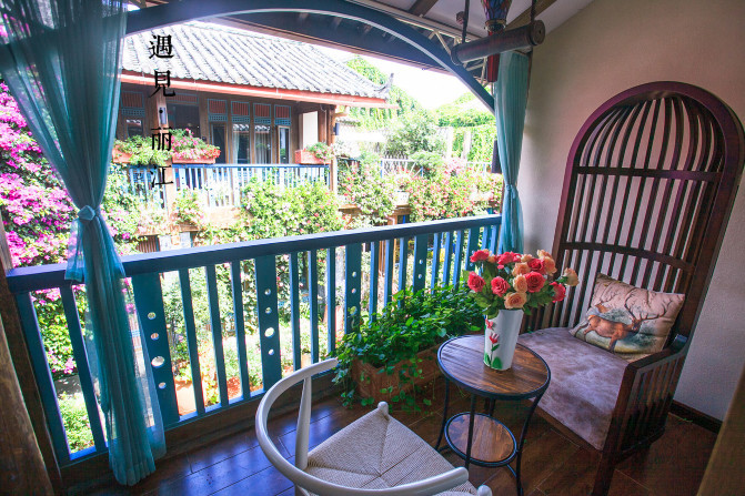 美式乡村风的花园和房间。比起大研,束河的优势就是空间更大更安静。我真的好喜欢这里呀!