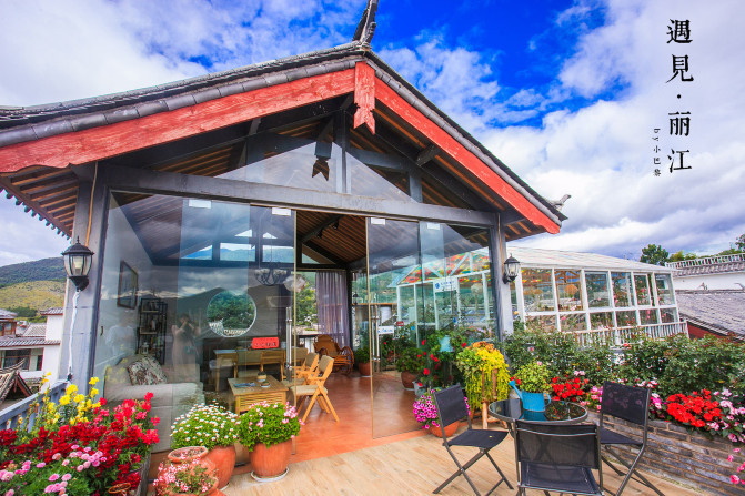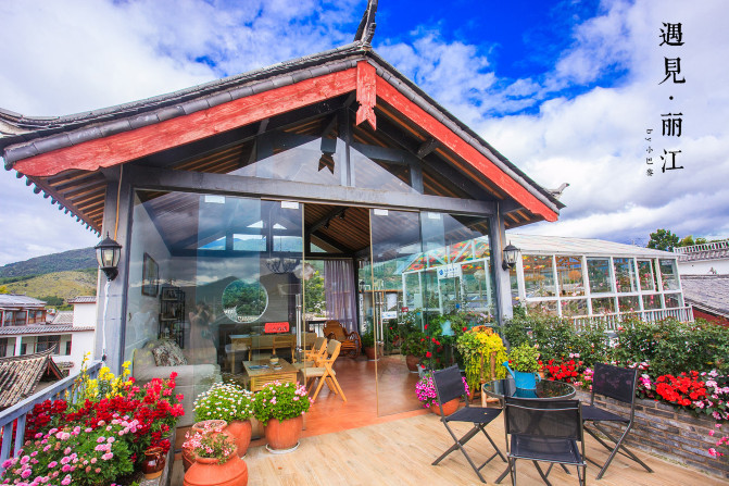 顶楼,可以遥望玉龙雪山。听花堂的性价比真的很高,也很适合拍照!