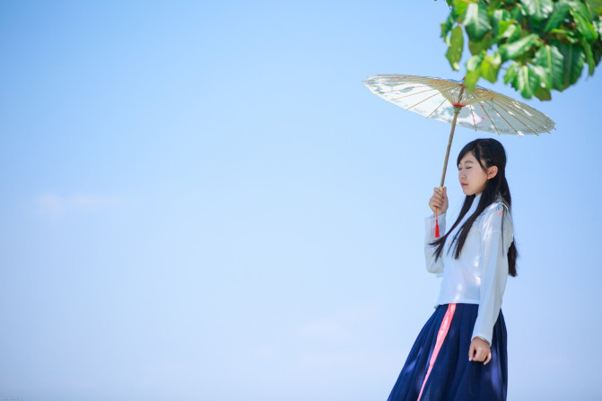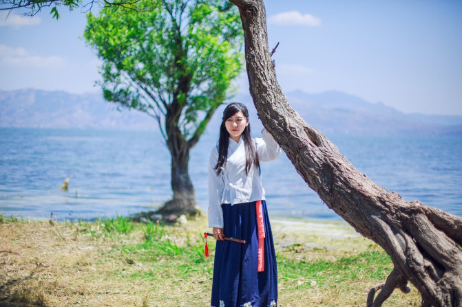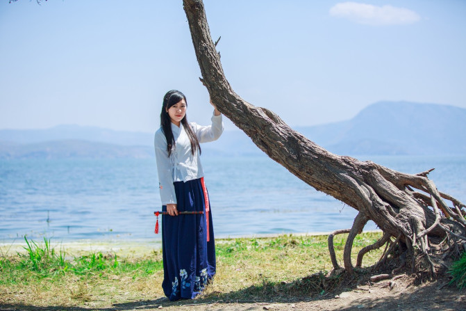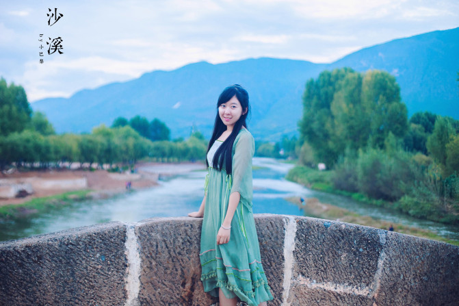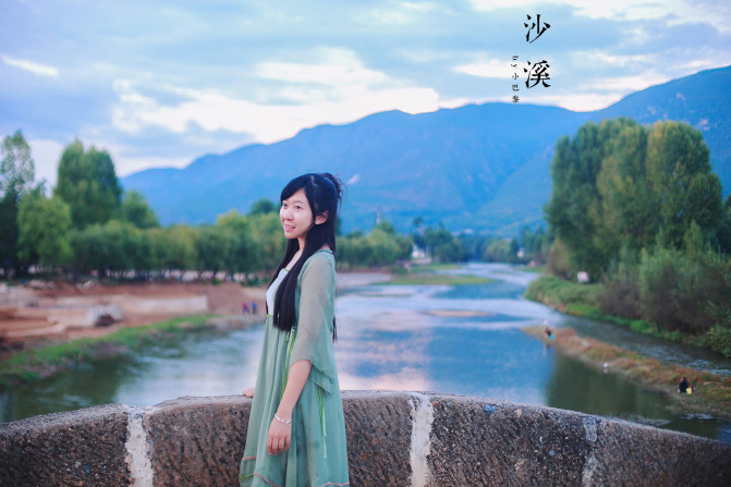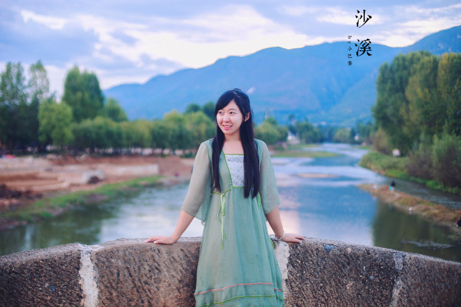 改良的汉服裙,有些古典元素,配上沙溪的安静,也是非常融入环境的。