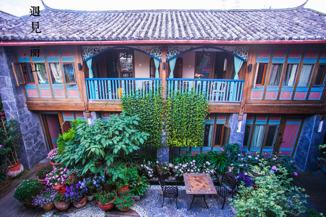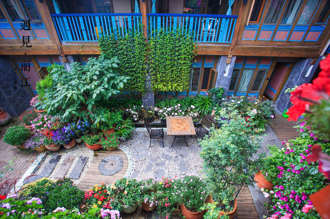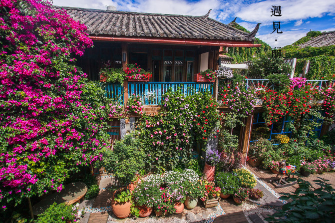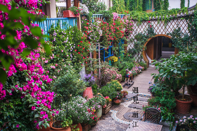 店主峰哥,耿直的四川人,爱好就是种花,因为情怀,在丽江开启了客栈。听花堂是我住过最浪漫的院子!