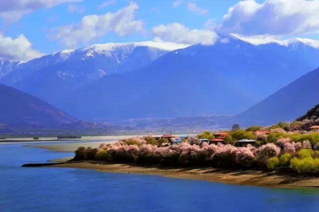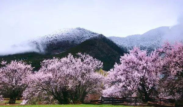 江南没有雪山,瑞士没有桃花,或许只有在林芝,才能尽享桃花掩映下的雪山之景。