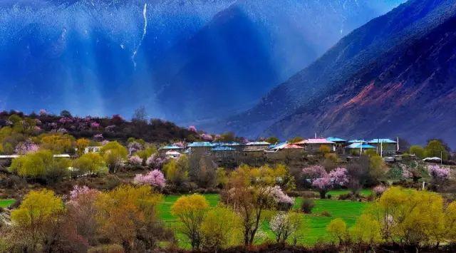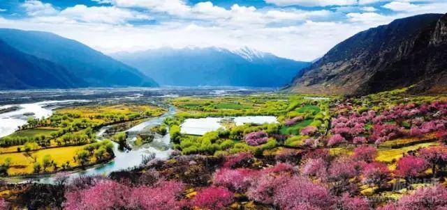 春天的林芝芳菲灿烂,圣域的雪山蓝天辉映与胜似江南的原生态田园风光,宛如世外桃源。