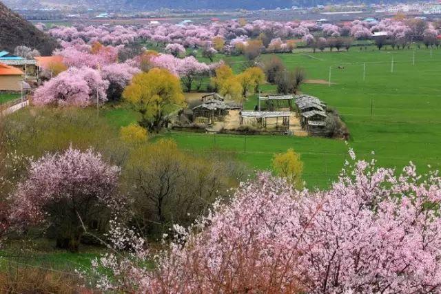 雪山、草甸、河水和密集的桃花,密密匝匝的桃林间可以闻花香,听花语,拍花景,晒花照。