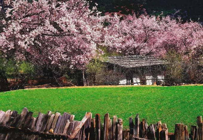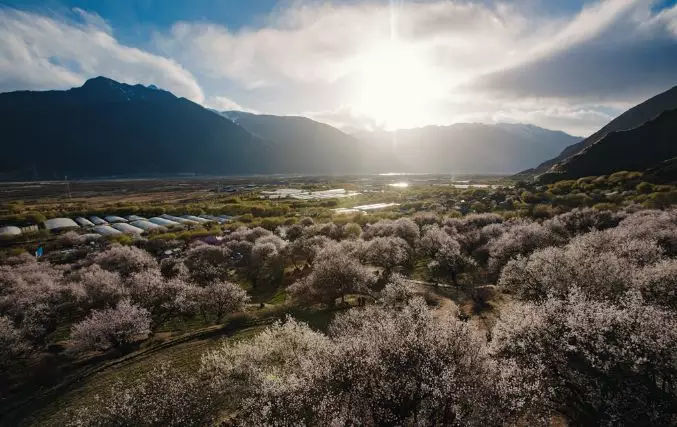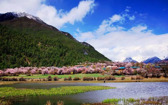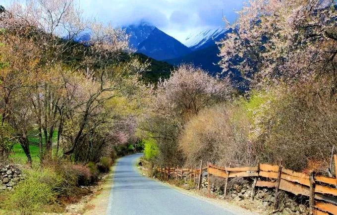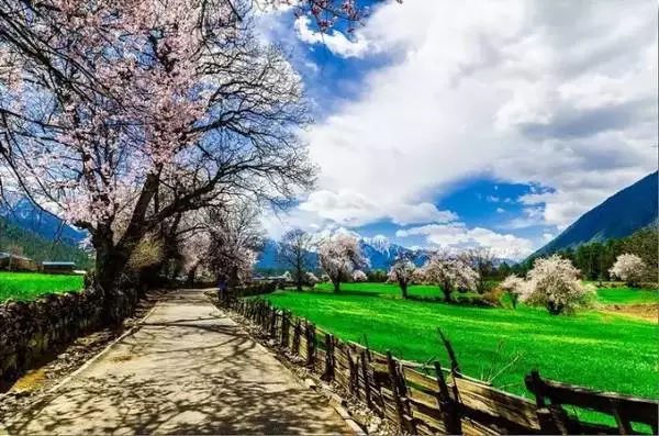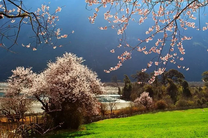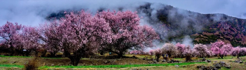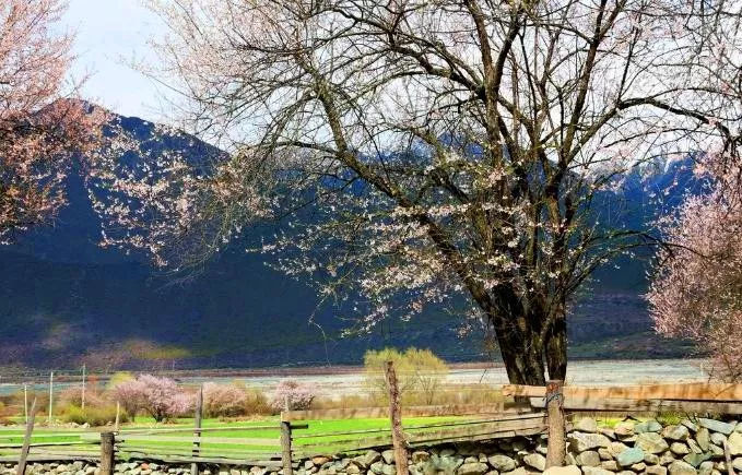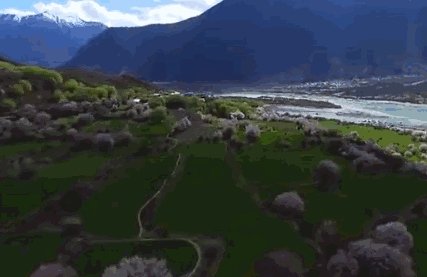在尼洋河两岸的山坡上,桃林与麦田交相辉映;三面环山的林芝桃花沟,溪水从山顶倾泻而下,涧边长满了野生桃树,无论是远观还是近玩,都让人回味无穷。沿着尼洋河畔两侧的田园和山丘上,大片密集的桃花盛开,一簇簇装点在碧绿草甸上,风光醉人。