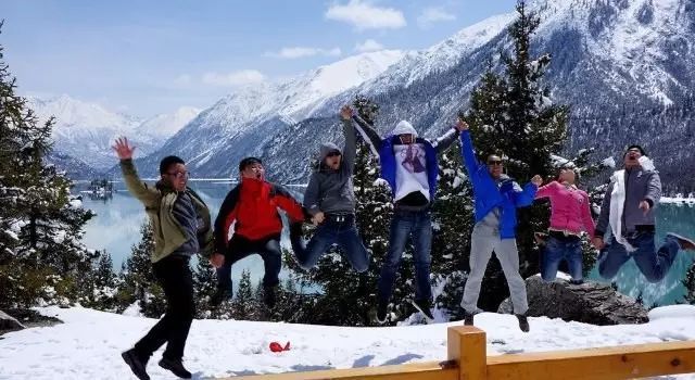 湖边是一大片碧草如茵的草甸,和着碧蓝的湖水、白雪皑皑的雪峰,景色如诗如画。
