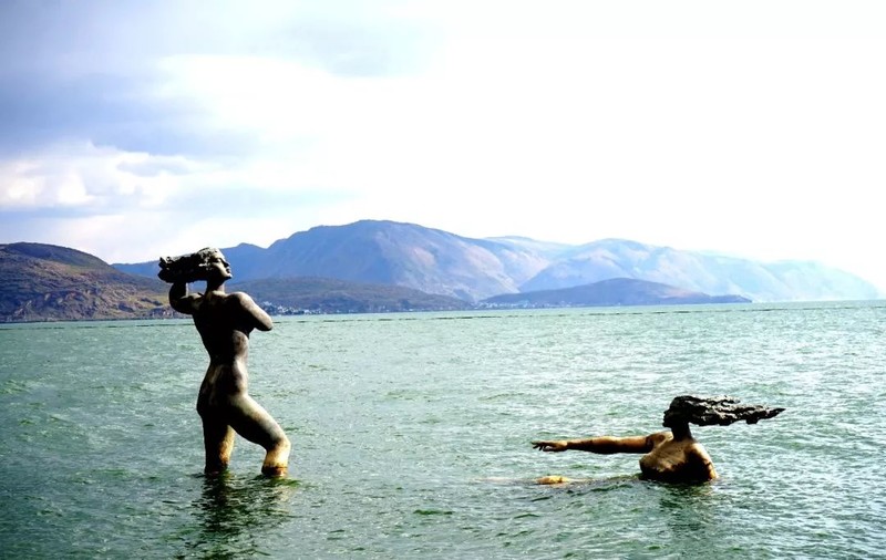 这是根据《后汉书·西南夷列传》中记载的有关大理地区一则神话雕刻而成的。