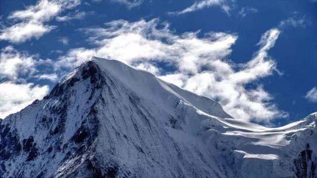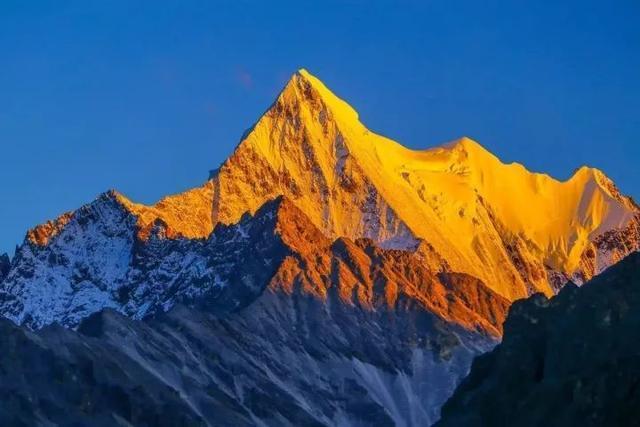 央迈勇峰则洁白而巍峨,显得神圣而庄严