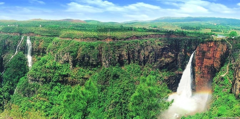 腾龙瀑布原名埕头大瀑布,因大峡谷的顶端状似一只大埕,谷面宽约600米,平静的大布河流从东南向西北蜿蜒流过,从200多米的悬崖峭壁腾空冲下,气势磅礴,震撼人心。