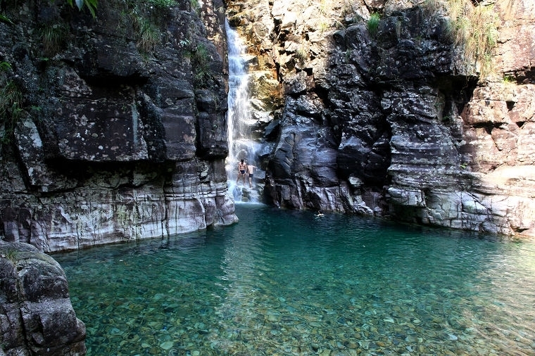 相比腾龙瀑布的直冲而下,黄龙瀑布就显得相对柔和。阶梯式瀑布,一水相衍,一瀑三叠,潭边拥有景区内宽阔的原石平台,坐拥碧水青山,观赏连绵不绝的瀑布,耳闻鸟鸣水响,轻松愉悦的感觉油然而生。