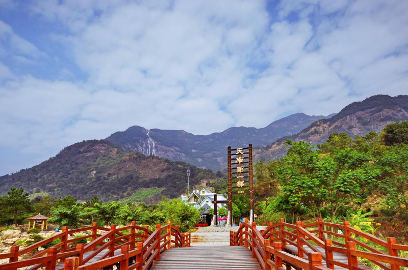 白水寨省级风景名胜区位于增城市北部山区的派潭镇,被誉为“北回归线上的瑰丽翡翠’,景区里山高林密,空气清新,充沛的降雨量造就了中国大陆落差最大的瀑布白水仙瀑。这道神奇的瀑布从白水寨山顶飞流直下,形态优美,洁白纯净,相传是八仙之一的何仙姑的化身。从山脚至山顶,修建在白水寨山丘陵线上的是被誉为“夭南第一梯"的登山步径。它横跨三座高山,连接两大天池,全长6.6公里,共有9 9 9 9级石阶。游客沿此路登山,可一站站拜访仙瀑美景。尤其是行至2 1 9 9级的亲瀑亭或是3 2 9 9级的沐瀑亭,感受犹为震撼。在瀑布下的亲水步道上悠游漫步,是接近自然接近仙瀑的更轻松方式。亲水步道的入口与“天南第一梯"的第2 9 9级相接,通至第1 2 9 9级的观瀑台,全长6 6 6米,是一条天然的木栈道。走在上面,游人可以一边眺望白水仙瀑的翩翩美态,一边前行,任潺潺的流水有如活泼欢快的音符般在脚下跳跃奔流。