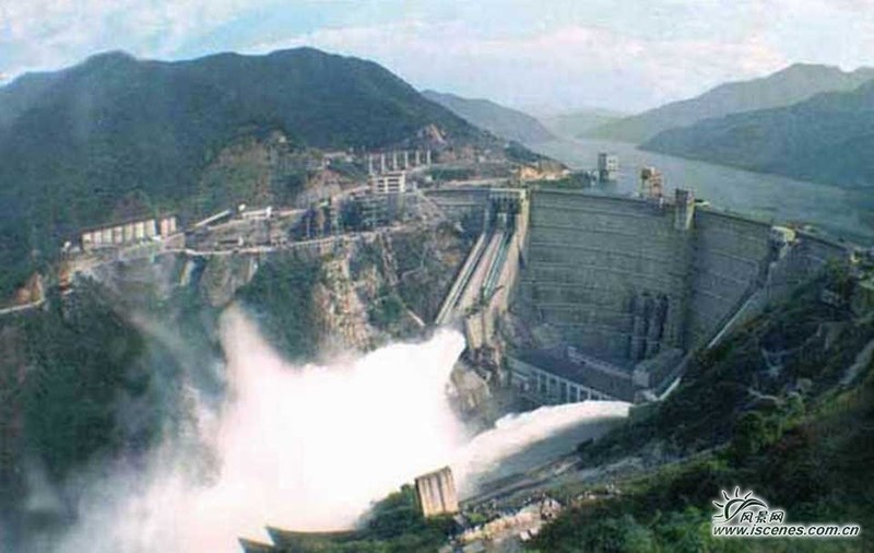 东江湖大坝,大坝结构新颖,造型美观,气势雄伟,为双曲薄壳拱坝,在世界同类坝型中排名第三,居亚洲第二,由我国自行设计和施工的双曲薄壳拱坝。春雨时节,湖水暴涨,坝闸双启泄洪之时,碧绿的湖水奔腾而下,直泄峡谷,飞散成万千水珠,形成一股巨大的雾汽扑向山谷,仿佛一匹硕大的银锻从九天漂然而下,顷刻间双化成无数的五彩珍珠撒落碧盘,蔚为壮观。