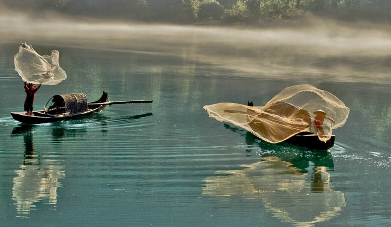 7:30开始有渔民撒网。(深圳户外驴友摄影发烧友的最佳选择地)