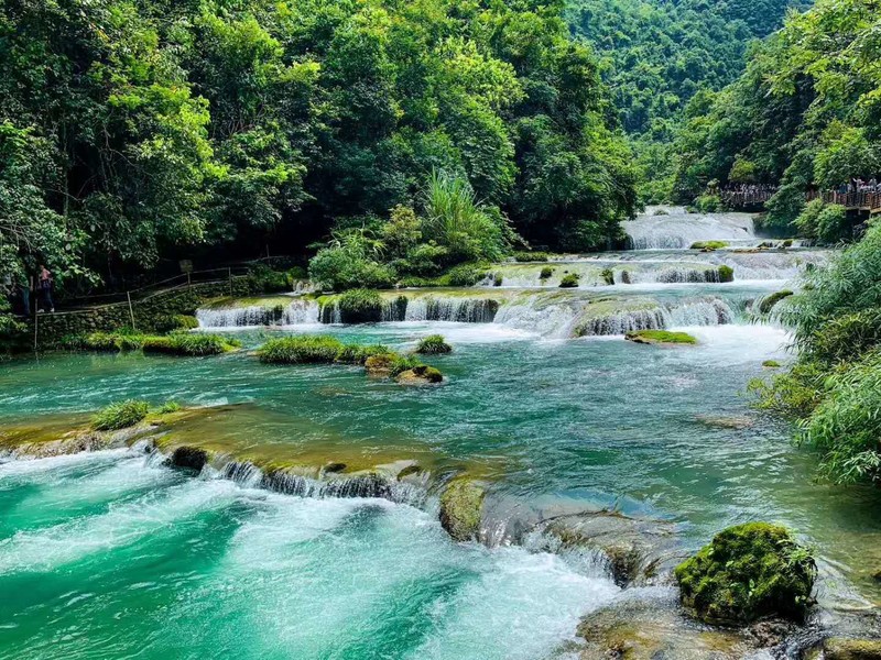 7:00早餐后乘车前往被联合国教科文组织誉为“地球上同纬度的最后一颗绿宝石”的黔南荔波(车程约4小时),中餐后乘车(10分钟)抵达国家AAAAA级风景区【小七孔】,游玩时间:不少于3小时;景点之间需换乘电瓶车(须自理电瓶车50元/人,走路无法游览)小七孔景区因一座建造于道光15年间(1836年)的小七孔石桥而得名;景区被称之为“超级盆景”,集山、水、洞、林、湖、瀑布等为一体,在长不到2公里的峡谷内,起迭着68级瀑布,顺贽而下,奔泻而去。