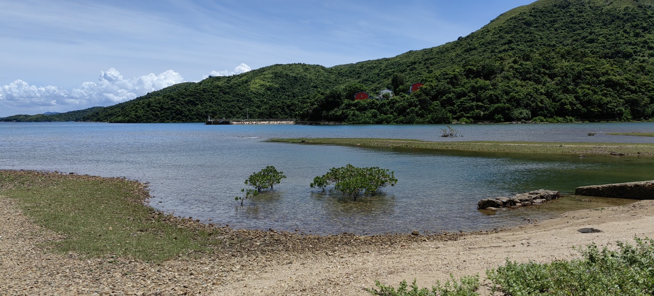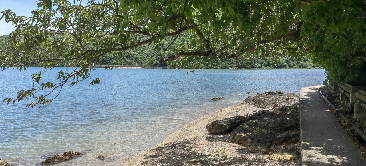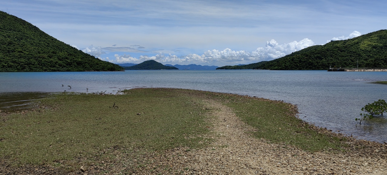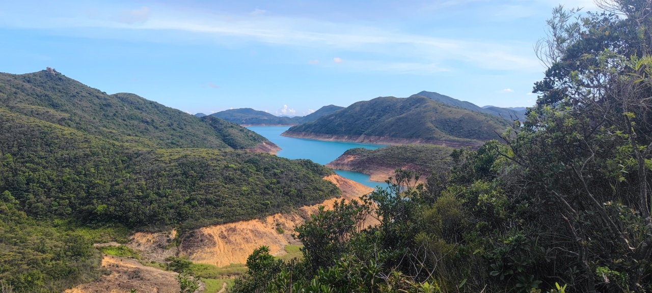 晴天下的万宜水库色彩活泼得让人惊艳,水色湛蓝,犹似天然湖泊,遇上天朗气清的日子,还可以远眺蚺蛇尖。