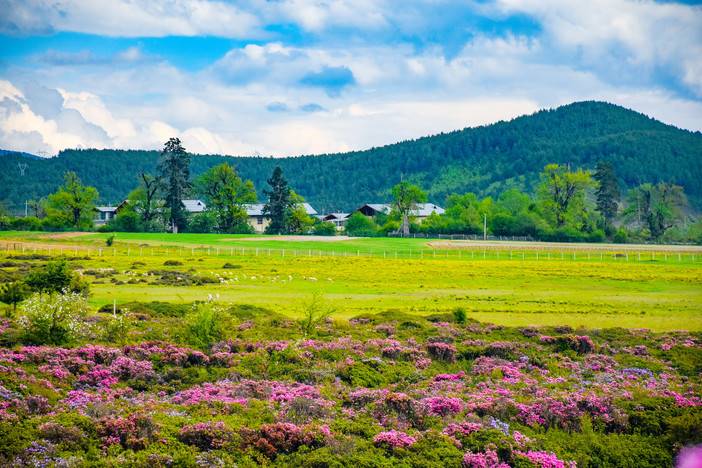 永不败落的鲜花是草原的笑容;呼啸山鹰是云中的音符;山间的牦牛,像大地的纽扣。狼毒花燃烧了自己,也点燃了原野;