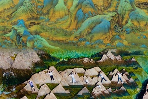 因其独特的自然景观而被誉为现实版的“千里江山图”。这一美誉来源于岛上一种特殊的自然现象,尤其是在退潮时和通过航拍视角观察,东平洲的页岩地貌与海水相互映衬,形成了类似中国古典名画《千里江山图》的画面效果。