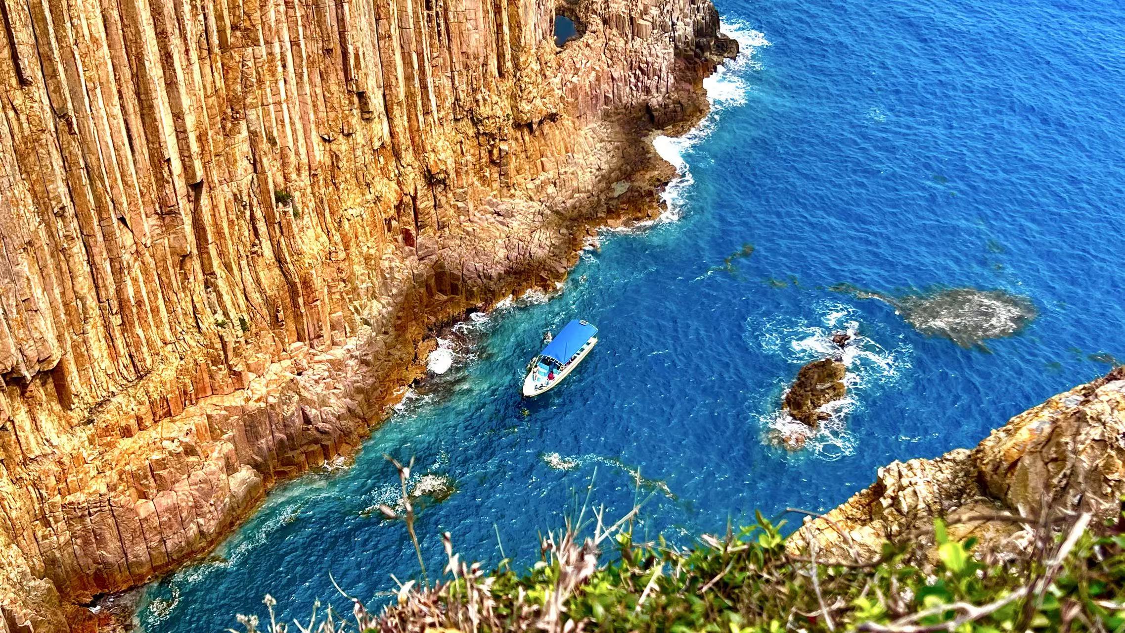 竖立于海上彷如天工的巨形竖琴正在眼前--破边洲。齐整的垂直条纹像被利刀怒劈,成为精心雕琢的天然作品,壮观夺目。