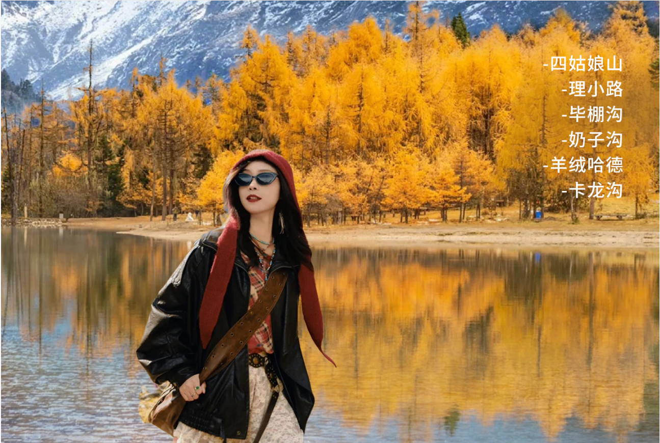 从古尔沟出发,行驶约1.5小时至刷马路口,刷马路口是“川西彩林观景第一站”,此处有开阔的观景平台,无需门票,可远眺“雅克夏雪山”(海拔5040m),若天气晴朗,雪山峰顶的积雪会反射阳光,搭配下方初染金黄的灌木丛,适合拍“人物+雪山”全景照。