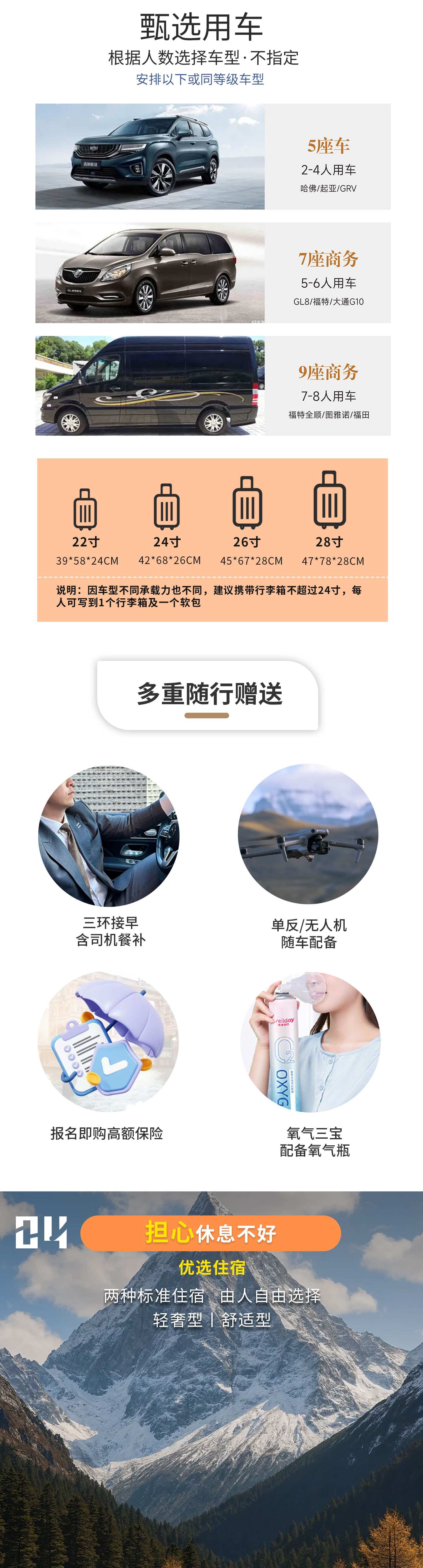 5、随车配备无人机或单反(旺季/节假日不保证随车);