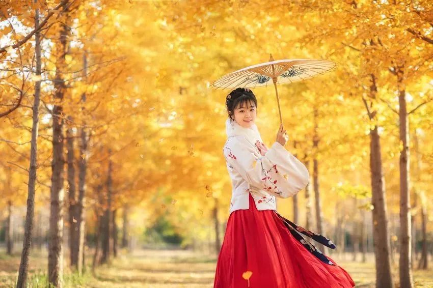 穿汉服赏银杏