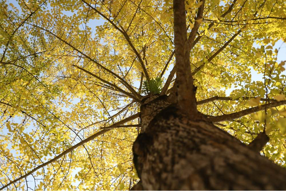 不同于枫叶的姹紫嫣红,银杏它只是用一种颜色,便把秋渲染到了极致。