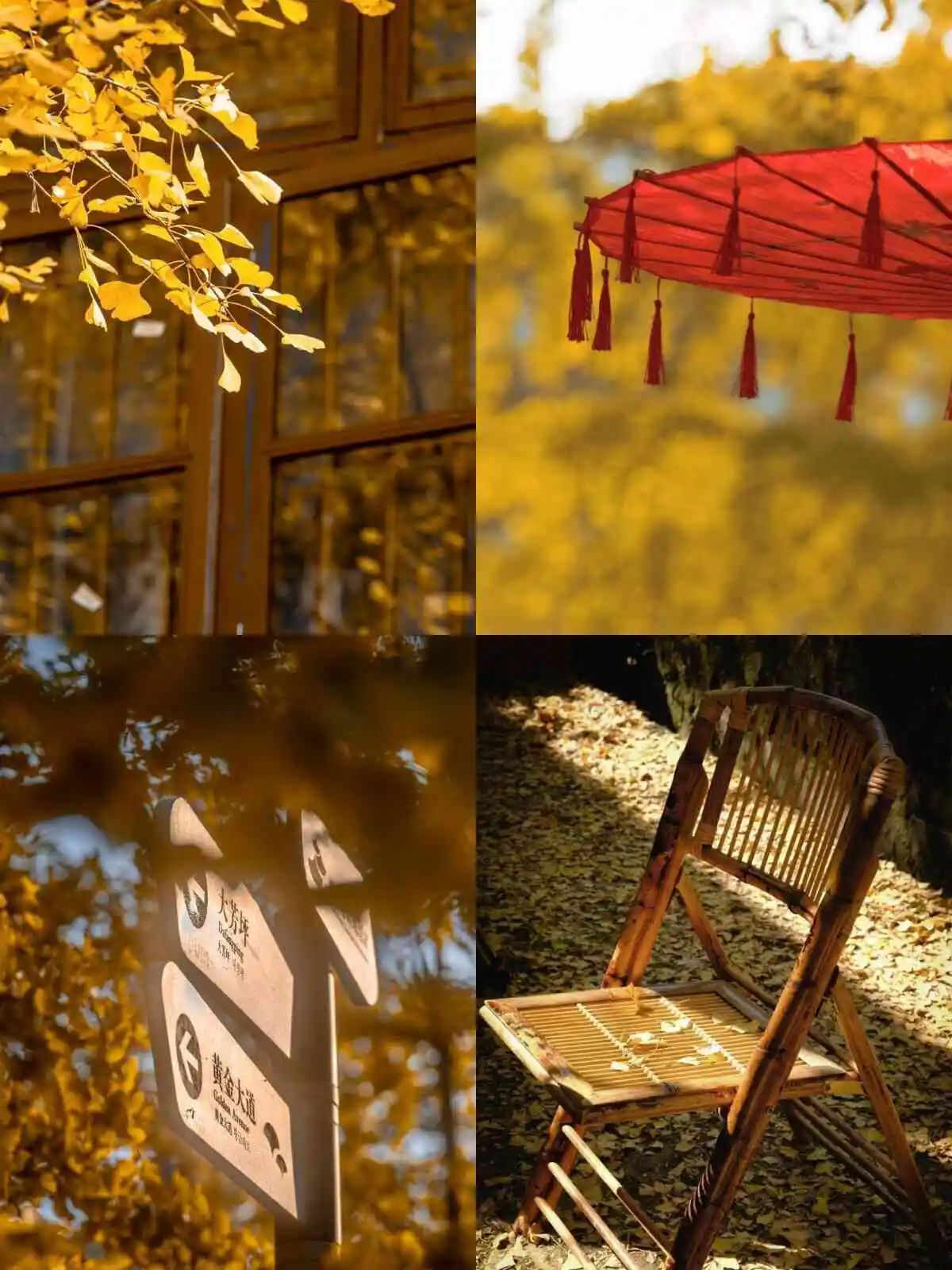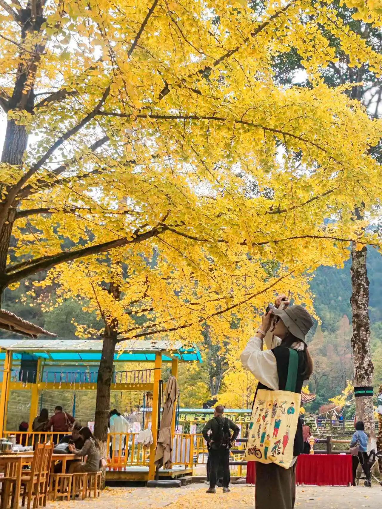 ④喜欢拍照的朋友需要酌情的准备应景的服装咯。建议红色、黑色、蓝色等深色为宜,也就是与银杏叶的黄色错开。