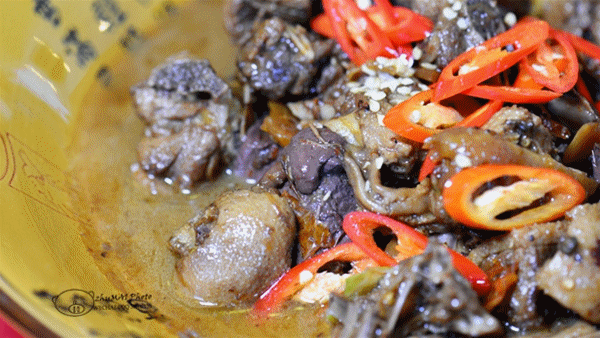 酸笋焖鸭到处皆有,唯独南雄的出名。因为有酸笋的加入,辣味更甚,只吃了一块,便觉得胃口大开,停不下口来。若是留着隔一餐再食,重新炖热,酸笋鸭的无穷风味则体现得更加淋离尽至。