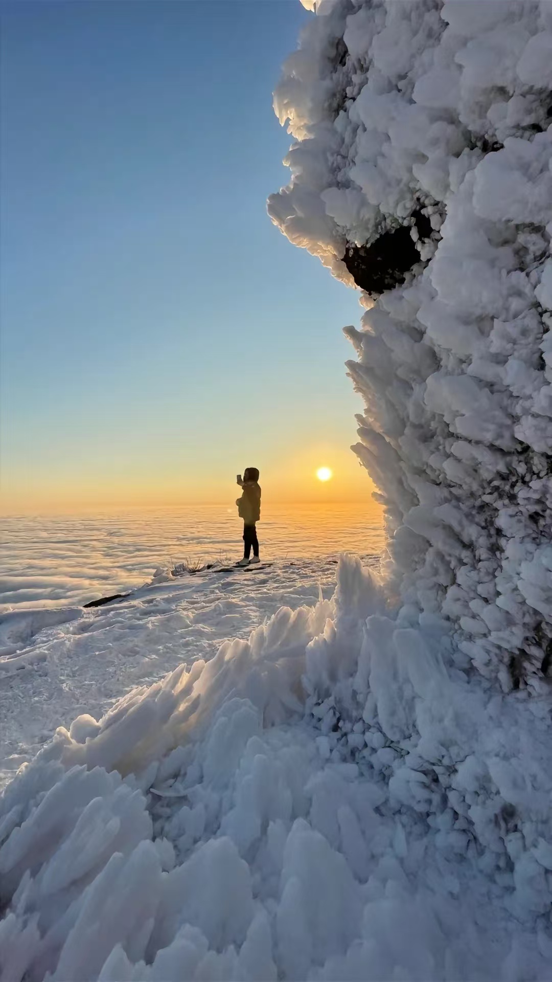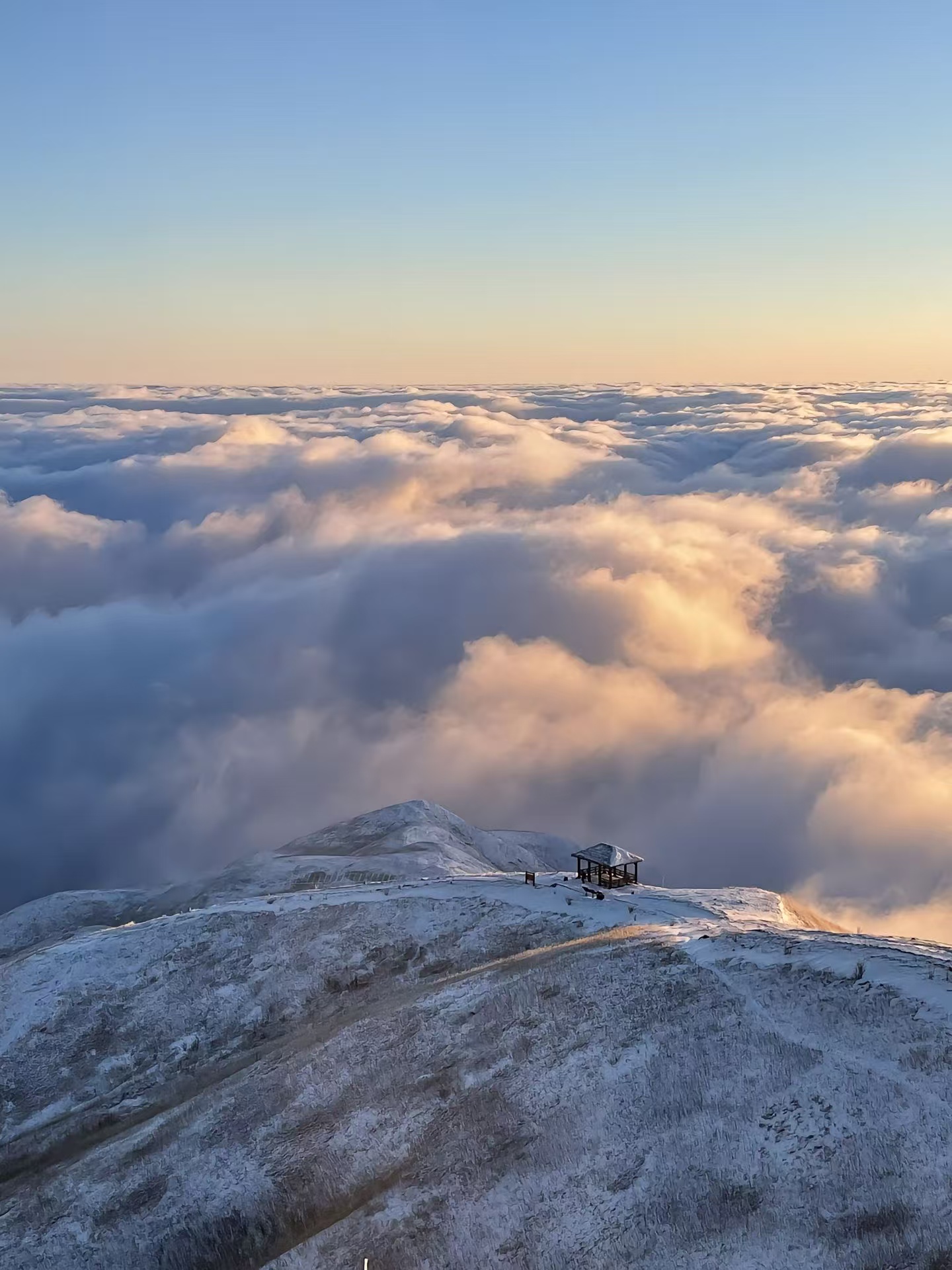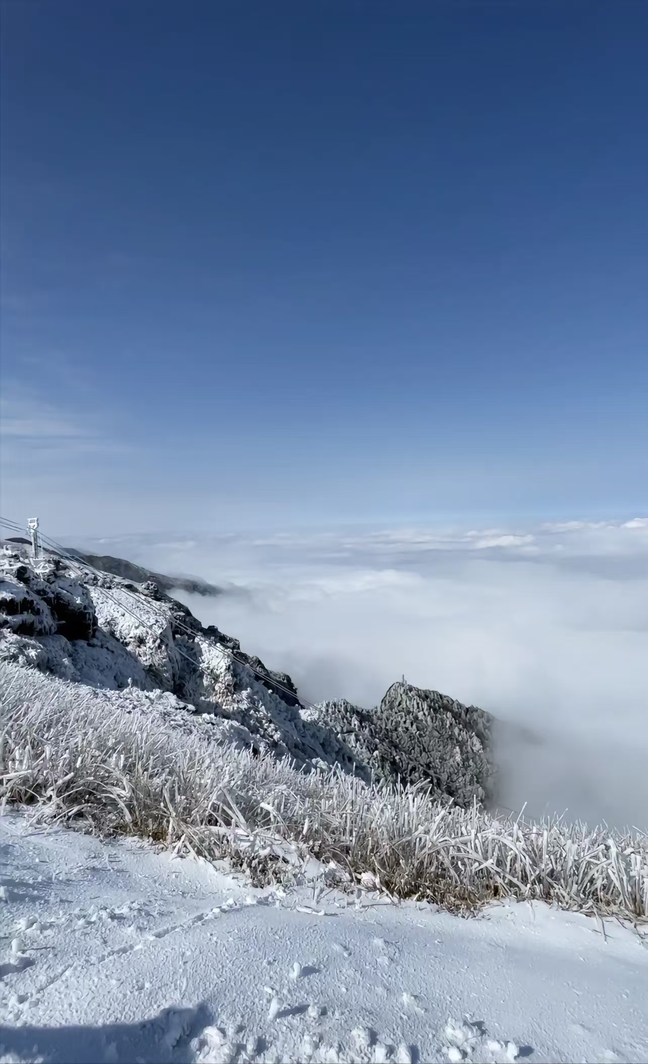 武功山最让人赫然称奇的,除了10万亩铺在山巅上的连绵草原以外,便是那大概率碰到的「云海」:漫无边际的云,如临于大海之滨,波起峰涌,浪花飞溅,惊涛拍岸。
