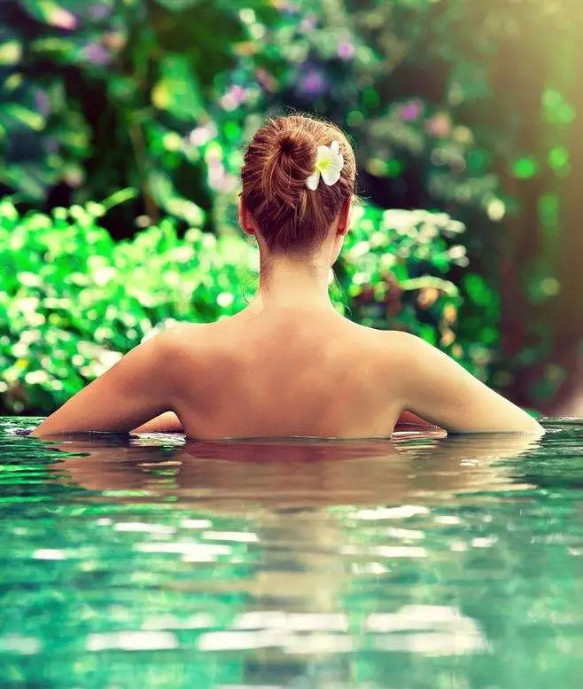9、浸泡完温泉后用清水冲洗身体,尽量不要使用肥皂或沐浴液等,以保存皮肤表面所吸收的矿物质
