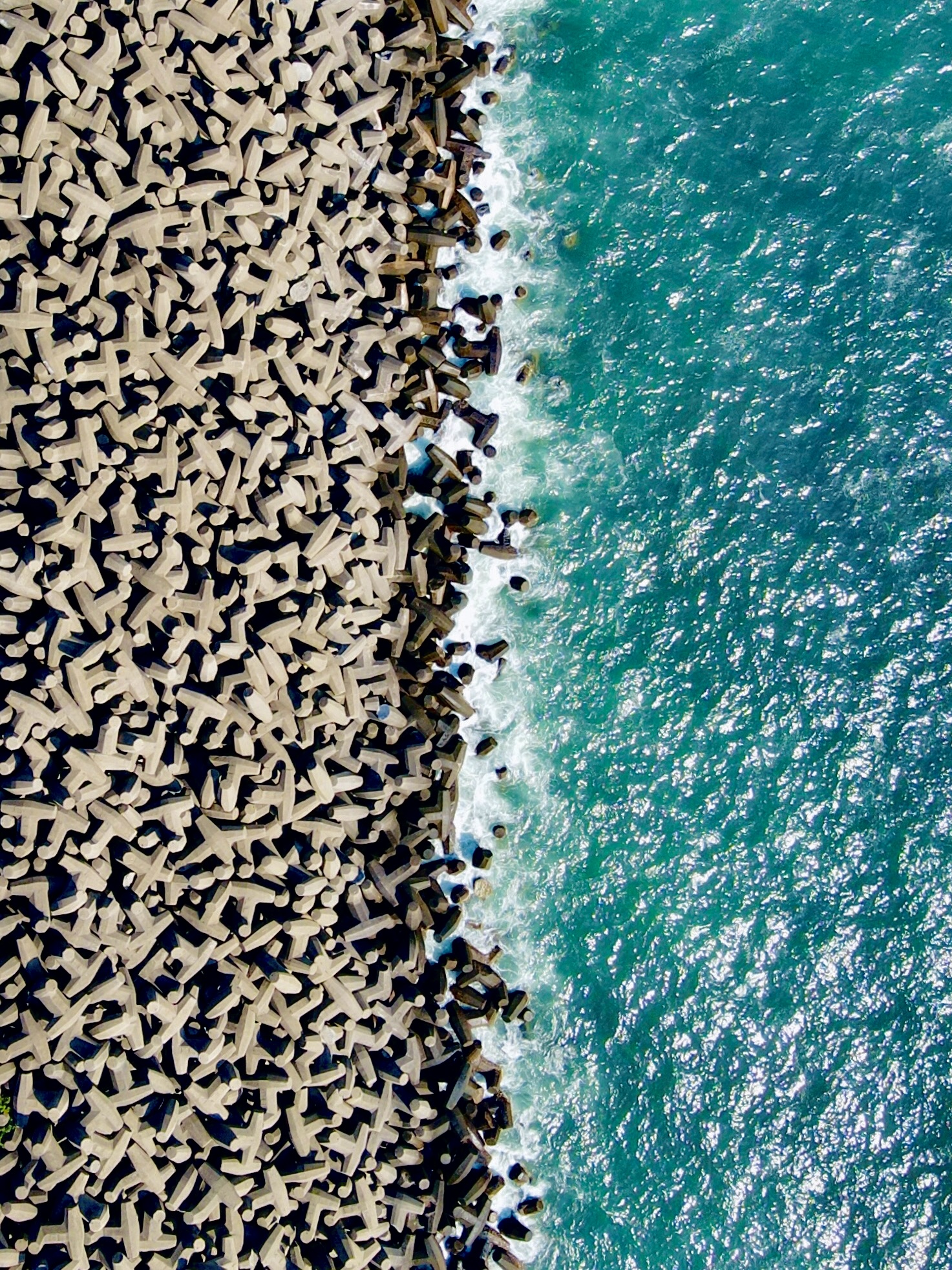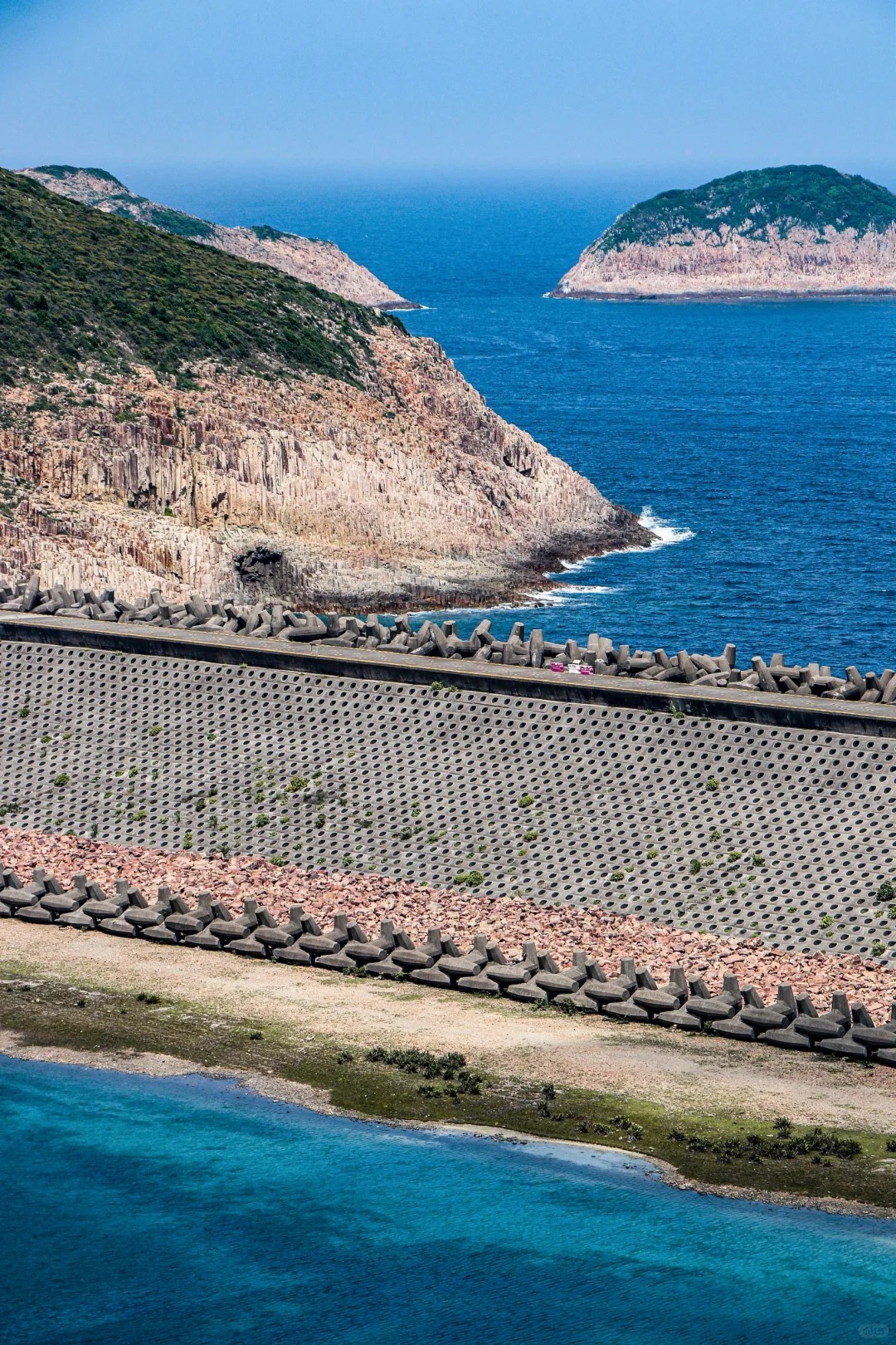 分布在大坝下方还有一整片整齐划一的圆形洞穴,令人不禁联想起有趣的打地鼠游戏。这些“地鼠洞”位于锚形防波堤和主坝之间,作用是巩固防波堤。
