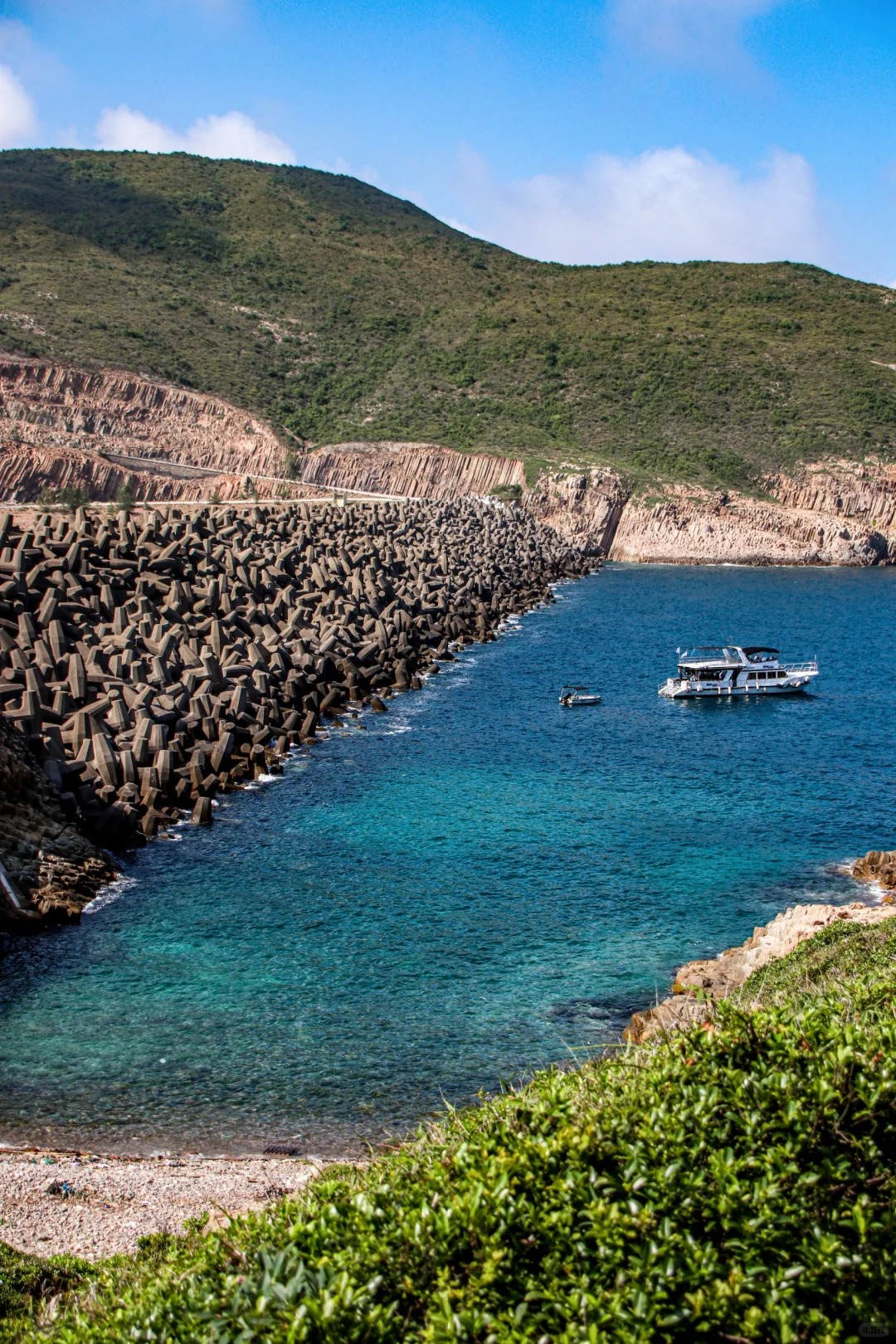 沿着海岸线前行 海风裹挟着咸湿气息扑面而来左手是陡峭山脊 右手是果冻色海水徒步小白也友好!