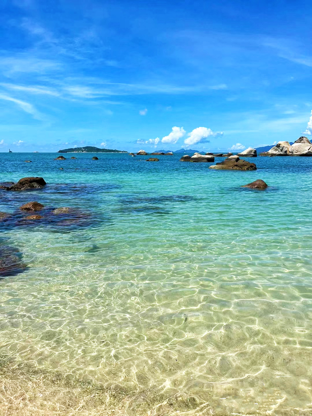 这里大家可以游泳戏水,岛上海水清澈,能见度高,可以自费浮潜、深潜,尽享碧海蓝天的美丽风光