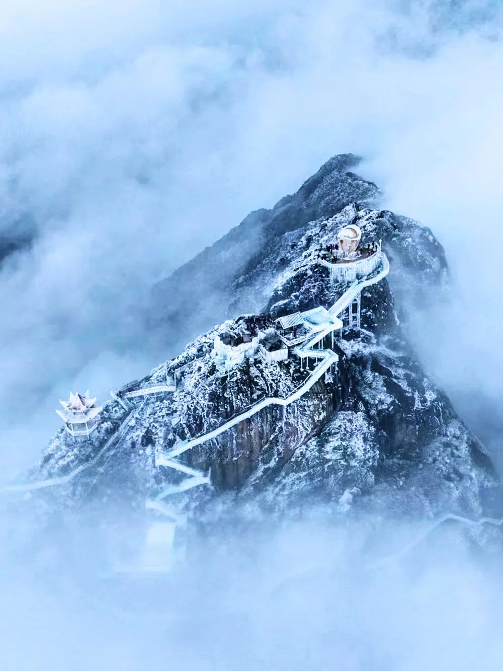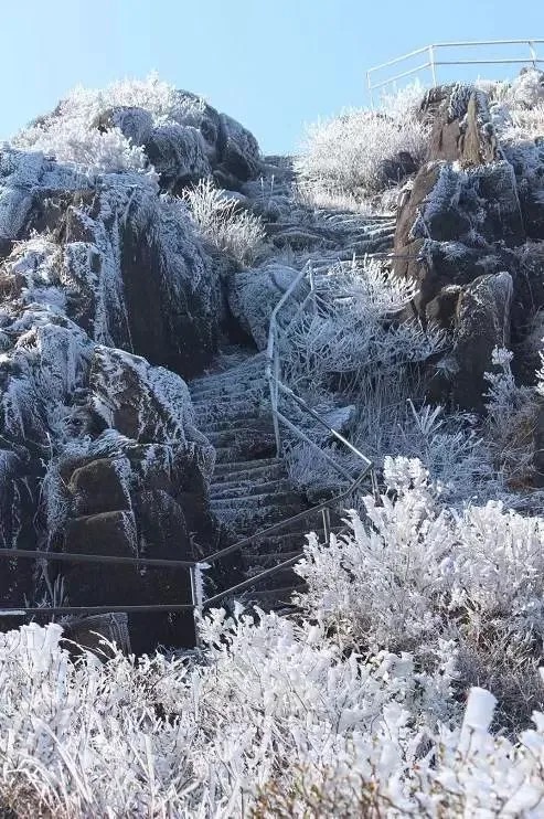 金子山素有“广东玉龙雪山”之称的金子山,地处粤北地区,因最高海拔达1417米一到冬天气温低至几度,是广东少有看得到雪景的地方!如果气温再下降金子山就可能飘起细雪、出现冰凌,很快就会切换成一个白色的童话世界,形成一幅冰封大山的奇观 ,十分吸睛。山腰中,竹林里,台阶间,树枝上或许就会积满冰凌、冰花,悬吊着许多冰挂,山舞银蛇,银装素裹,呈现一幅令人陶醉的雪景图!