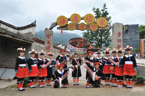 老人们穿的大都是瑶族服饰,妇女用白色的缠腰带绑住蓝色的襟衣,男人戴着红盘头巾———据说,这红头巾放下来有一丈多长,能驱鬼辟邪。