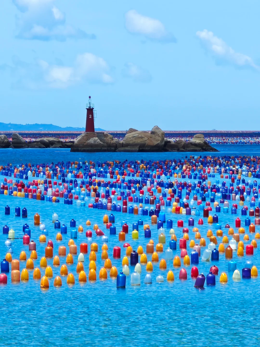 14:00车游在广东省汕头市南澳县【彩虹海】广袤的大海上 ,色彩斑斓的生态环保浮球方阵在朝阳映照下形成一片“彩虹海”。近年来 ,当地用新型环保材料彩色充气浮球固定和悬挂生蚝 ,报废后回收方便 ,不仅没造成污染。